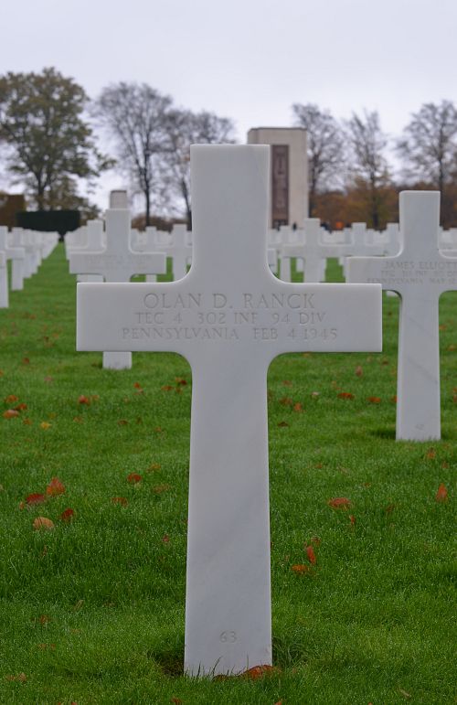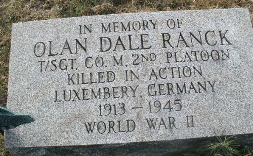 T/4 Olan D. Ranck attended high school for 2 years and was a mechanic. He enlisted in Harrisburg, Pennsylvania on 28 May 1942.He was killed by shell fragmentation wounds to the chest and arms.