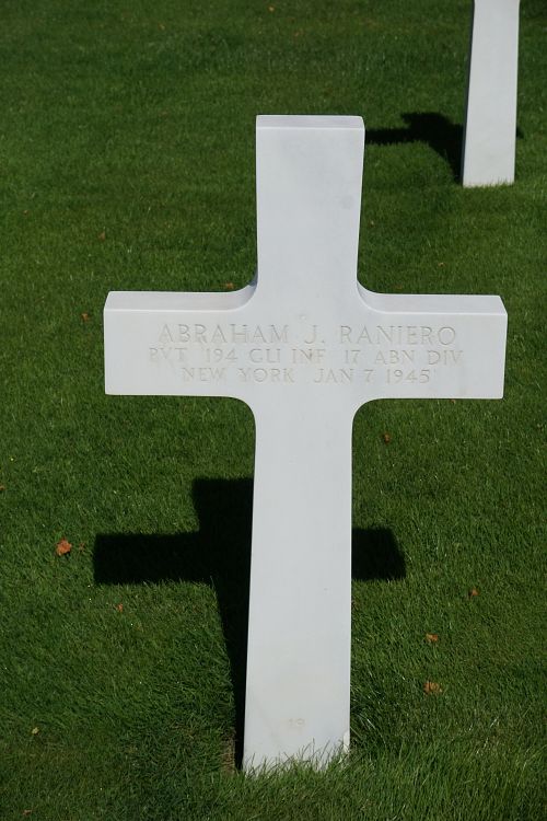 Pvt Abraham J. Raniero attended high school for 1 year before he enlisted in Buffalo, New York, on 26 June 1941.He was first buried at Temporary American Military Cemetery Grand Failly, France.
