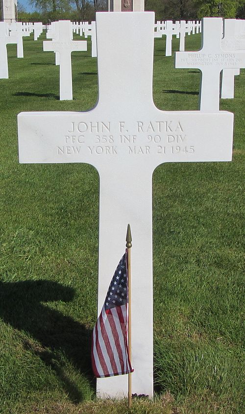 Pfc John F. Ratka enlisted in Buffalo, New York on 21 July 1944.Source of information: Peter Schouteten, www.abmc.gov, www.wwiimemorial.com, www.archives.gov - WWII Enlistment Record, www.ancestry.com - Headstone and Interment Record, www.findagrave.com - Russ Pickett