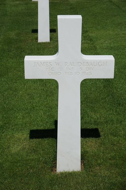 Pfc James W. Raudebaugh graduated from Stivers High School and was employed at the National Cash Register Company.He enlisted at Fort Thomas, Kentucky, on 19 March 1944.