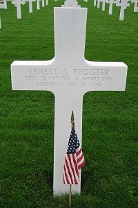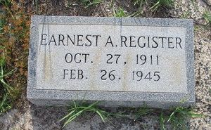 Pfc Ernest A. Register enlisted at Fort McPherson, Georgia on 19 November 1943.He is remembered at Long Bridge Cemetery in Nashville, Georgia.