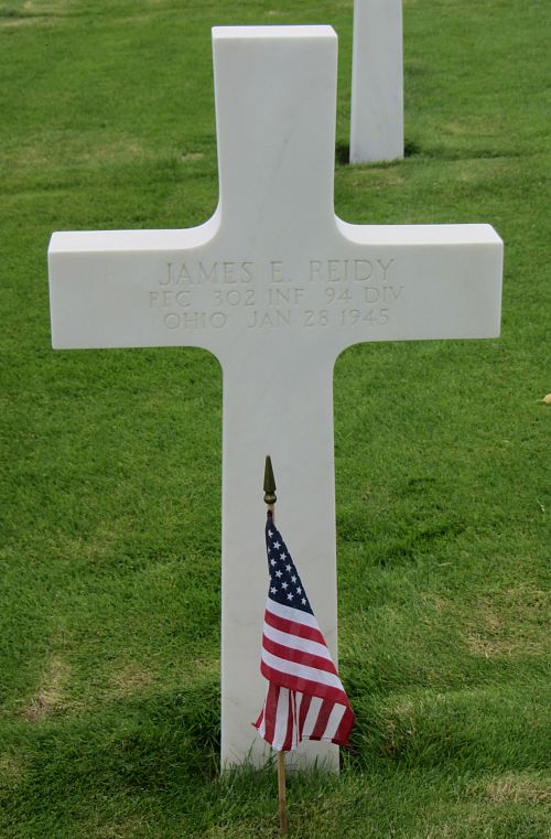 Pfc James E. Reidy attended high school for 4 years and was a driver before he enlisted in Cleveland, Ohio on 16 September 1943.He was wounded in October 1944 and returned to action shortly. He received his first Purple Heart for this action.