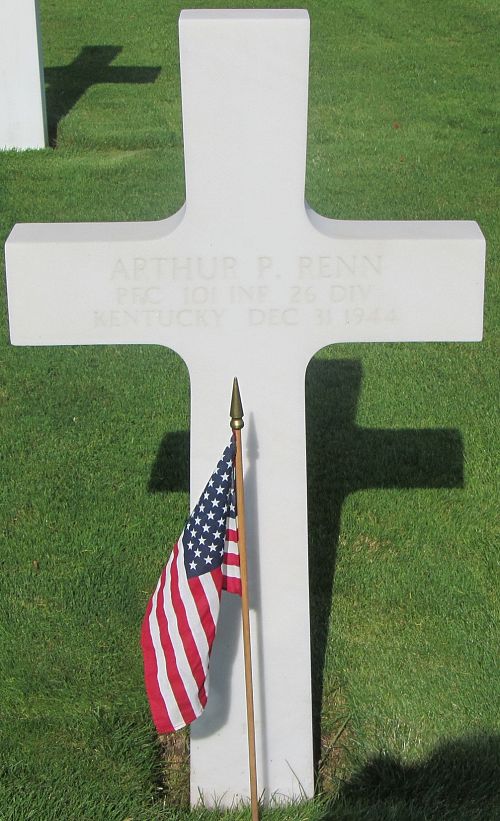 Pfc Arthur P. Renn worked on a farm before he enlisted in Louisville, Kentucky on 18 May 1943.Source of information: Peter Schouteten, www.abmc.gov, www.wwiimemorial.com, www.archives.gov – WWII Enlistment Record, www.ancestry.com - Headstone and Interment Record / 1930/1940 Census / Indiana Birth Certificates / U.S. WWII Draft Cards Young Men / Susan Lynn Fanska Janet Retzer Tree, www.fold3.com – 26th Infantry Division