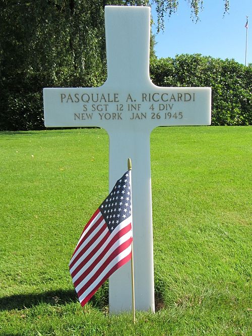 S/Sgt Pasquale A. Riccardi attended high school for three years and was a clerk before he enlisted at Fort Niagara Youngstown, New York on 19 February 1942.Source of information: Peter Schouteten, Danny van der Groen – Company’s / 4ID After Action Reports, www.abmc.gov, www.wwiimemorial.com – Joseph A. Riccardi, www.archives.gov – WWII Enlistment Record, www.ancestry.com - Headstone and Interment Record / New York State Birth Index / 1940 Census, www.findagrave.com