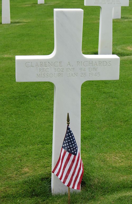 Pfc Clarence A. Richards was a farmer before he enlisted.He enlisted on 30 November, 1942 at Fort Leavenworth, Kansas and was sent overseas in August, 1944.