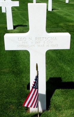 Pfc Leo N. Rietscha was a machine operator in a confection factory before he enlisted.He enlisted at Fort Custer, Michigan, on 27 March 1942.