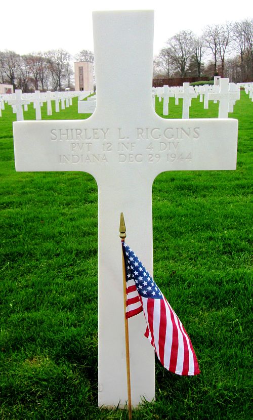 Pvt Shirley L. Riggins was employed at Rex Manufacturing Company in Connersville.He enlisted at Fort Benjamin Harrison, Indiana on 26 April 1944 and was sent overseas in November 1944.