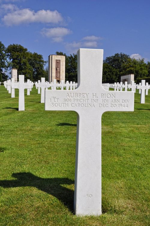 1st Lt Aubrey H. Rion enlisted in Fort Jackson Columbia, South Carolina on 30 June 1942.He graduated from Columbia High School and was a teacher before he enlisted. He attended Clemson University, with the goal of becoming a doctor. While at Clemson, he played quarterback.