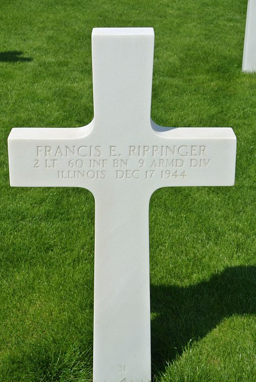 2nd Lt Francis E. Rippinger graduated from Marmion Military Academy in 1937 and was a machinist before he enlisted.He is also remembered at the Marywood Cemetery in Aurora, Kane County, Illinois.
