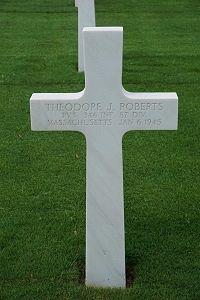 Pvt Theodore J. Roberts attended Haverhill High School for three years before he enlisted at Fort Devens, Massachusetts on 26 June 1944.He was first buried at the Temporary American Military Cemetery in Grand Failly, France.