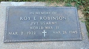 Pvt Roy L. Robinson joined the Regular Army in Ottawa, Illinois on 8 July 1940.He is remembered at the Olive Branch Cemetery in Olive Branch, Alexander County, Illinois.
