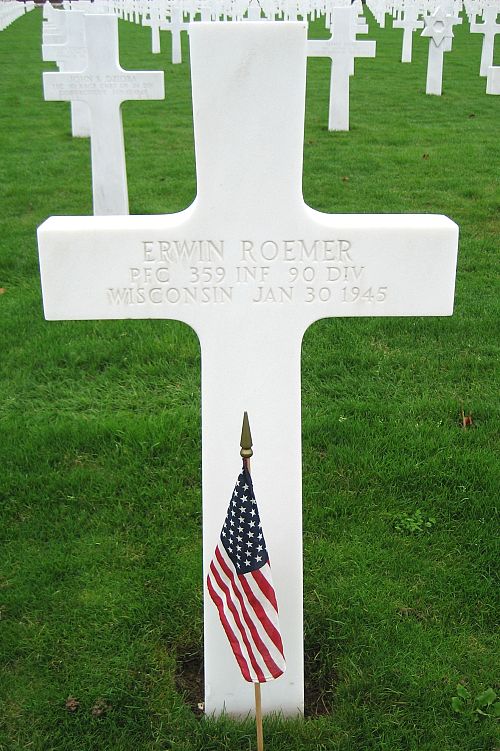 Pfc Erwin Roemer attended was a driver before he joined the U.S. Army Reserve in Milwaukee, Wisconsin on 7 May 1943.Source of information: Peter Schouteten, www.abmc.gov, www.wwiimemorial.com, www.archives.gov – WWII Enlistment Record, www.ancestry.com - Headstone and Interment Record / 1940 Census