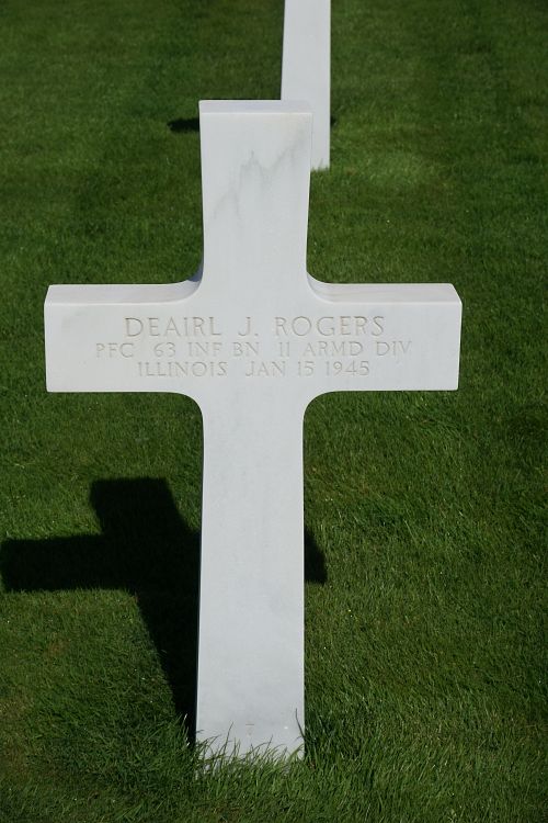 Pfc Deairl J. Rogers enlisted in Peoria, Illinois on 27 October 1942.Pfc Rogers brother, Lt William W. Rogers, was killed in Germany in 1944 and is buried at Ardennes American Cemetery and Memorial in Neupré, Belgium.