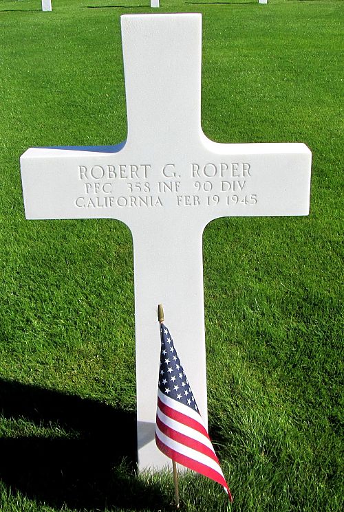 Pfc Robert G. Roper worked at the Goodyear Tire and Plant before he enlisted in Los Angeles, California on 2 September 1944. He was sent overseas in January 1945.Source of information: Peter Schouteten, www.abmc.gov, www.wwiimemorial.com, www.archives.gov – WWII Enlistment Record, www.ancestry.com - Headstone and Interment Record / U.S. WWII Draft Cards Young Men, www.findagrave.com