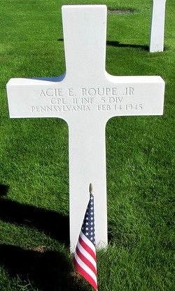 Cpl Acie E. Roupe graduated from Trinity High School and was a construction foreman before he enlisted in Pittsburg, Pennsylvania on 30 July 1942.Cpl Ropue was killed by shrapnel.