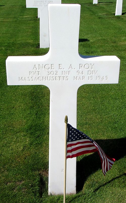 Pvt Ange E. A. Roy joined the National Guard in Fall River, Massachusetts on 16 September 1940.Source of information: Peter Schouteten, www.abmc.gov, www.wwiimemorial.com, www.archives.gov – WWII Enlistment Record, www.ancestry.com - Headstone and Interment Record, http://www.94thinfdiv.com