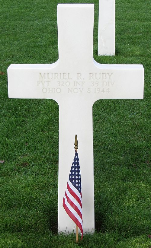Pvt Muriel R. Ruby was employed at the Federal Glass Company before he enlisted.Source of information: Peter Schouteten, www.abmc.gov, www.wwiimemorial.com, www.ancestry.com - Headstone and Interment Record / U.S. WWII Draft Cards Young Men / The Cole Family Tree, After Action Report 35th Infantry Division, www.findagrave.com – MAJ Jimmy Cotton