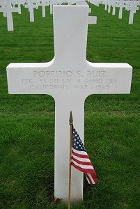 Pfc Porfirio S. Ruiz enlisted in Los Angeles, California on 10 December 1942.Source of information: André Koch, www.abmc.gov, www.wwiimemorial.com, www.archives.gov – WWII Enlistment Record, www.ancestry.com - Headstone and Interment Record, AAR 53rd AIB July 44 thru May 1945