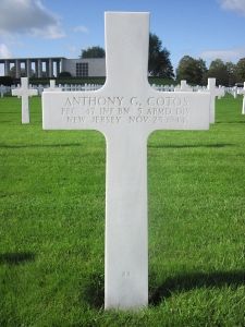 Anthony Cotos enlisted on 17 May 1943 at Newark, New Jersey.He was killed by small arms fire in the head.