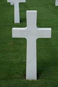 Pvt Gordon L. Russ attended high school for one year and was a bartender before he enlisted at Fort Snelling, Minnesota on 29 February 1944.He was first buried at the Temporary American Military Cemetery in Grand Failly, France.
