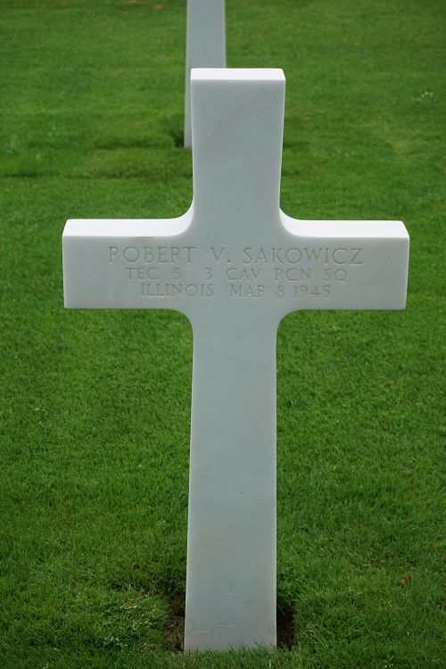 T/5 Robert V. Sakowicz graduated from Thornton Township High School in 1942. He was employed at R. R. Donnelly Company before he enlisted.The Company crossed the Saar River and advanced east to Hockweiller, where the Company ran into a heavy enemy artillery barrage. Pfc Frank Obrochta and T/5 Robert Sakowicz were killed.
