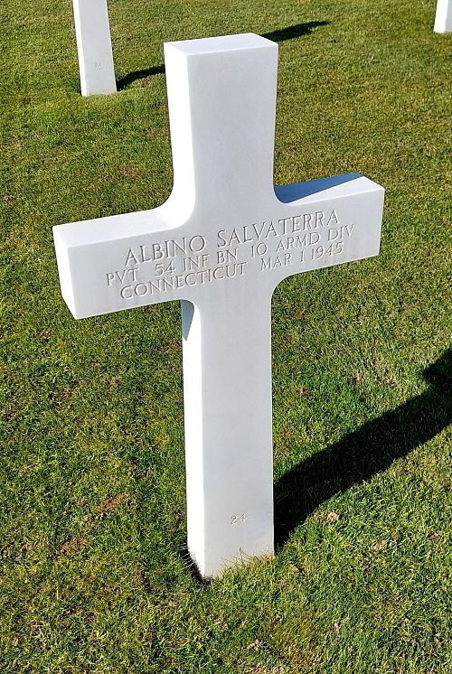 Pvt Albino Salvaterra was a tool sharpener and dresser before he enlisted in Hartford, Connecticut on 30 September 1942.Source of information: Peter Schouteten, www.abmc.gov, www.wwiimemorial.com, www.archives.gov – WWII Enlistment Record, www.ancestry.com - Headstone and Interment Record / Bierman Schelper Tree, www.10tharmored.com