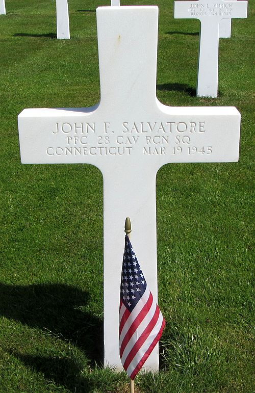 Pfc John F. Salvatore was employed at the Marone's Grocery Store before he enlisted in New Haven, Connecticut on 19 March 1943.He died from the effects of a gunshot in the chest and stomach.