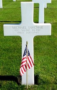 Pfc Michael Savchak graduated from Lincoln High School and attended college for one year. He was employed as a toolmaker.He enlisted at Fort Hayes, Columbus, Ohio on 12 March 1943.