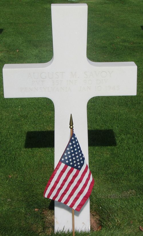 Pvt August M. Savoy attended Pittston Township High School before he enlisted at Wilkes Barre, Pennsylvania, on 21 January 1944. He went overseas on 6 December 1944.Source of information: Peter Schouteten, www.abmc.gov, www.wwiimemorial.com – Nuncio N. Savoy II, www.archives.gov – WWII Enlistment Record, www.ancestry.com - Headstone and Interment Record / U.S. WWII Draft Cards Young Men, www.newspapers.com – Wilkes Barre Times Leader Pennsylvania - 23 January 1945