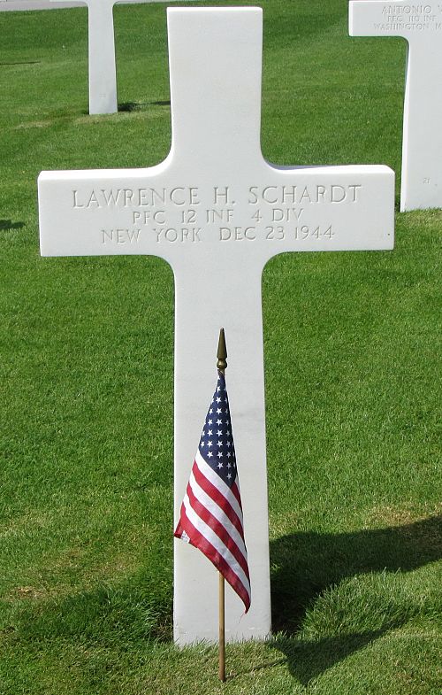 Pfc Lawrence H. Schardt enlisted in Pine Beach, New Jersey on 30 April 1943.Source of information: Peter Schouteten, Danny van der Groen – Company’s / 4ID After Action Reports, www.abmc.gov, www.wwiimemorial.com, www.archives.gov – WWII Enlistment Record, www.ancestry.com - Headstone and Interment Record / Biglin Bellerose Family Tree, www.findagrave.com – John Doran
