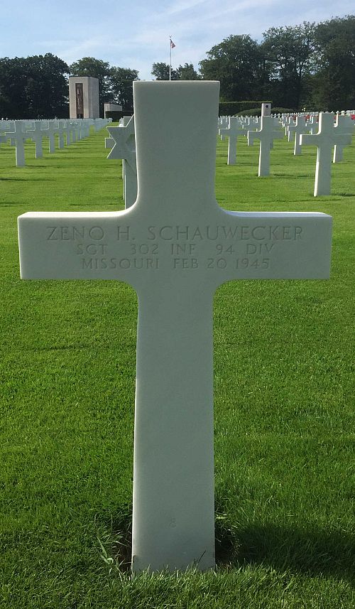 Sgt Zeno H. Schauwecker was a bartender before he enlisted in Jefferson Barracks, Missouri on 19 November 1943.He is remembered at the Cemetery in Westphalia, Osage County, Missouri.