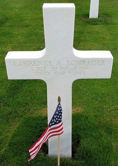 S/Sgt Lawrence A. Schrader Jr. was a machinist before he enlisted at Fort Hayes, Ohio on 11 March 1943.Source of information: Peter Schouteten, 4ID After Action Reports, www.abmc.gov, www.wwiimemorial.com, www.archives.gov - WWII Enlistment Record, www.ancestry.com - Headstone and Interment Record / 1940 Census
