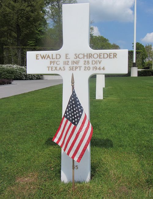Pfc Ewald E. Schroeder enlisted in Fort Sam Houston, Texas on 25 February 1944.He was killed by German machine gun fire on the Wallendorf bridge, Germany.