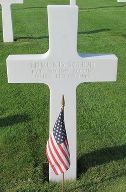Pvt Edmund Schuh attended high school for four years and was a student before he enlisted at Fort Benjamin Harrison, Indiana on 24 February 1944.He was killed by artillery shell fragments to the head.