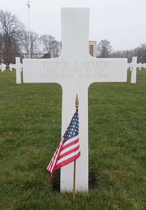 Pfc Victor J. Schum was employed at Stearn's Dairy.He enlisted on 28 January 1942. He had spent two years in the Aleutians before being sent to the ETO in December 1944.