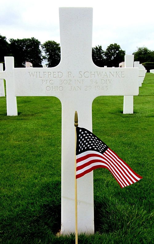 Pfc Wilfred R. Schwanke attended high school for 1 year before he enlisted in Cleveland, Ohio on 24 August 1942.Source of information: Peter Schouteten, www.abmc.gov, www.wwiimemorial.com, www.archives.gov - WWII Enlistment Record / Dowler Wilkinson Tufts Felter Tree / Ohio Birth Index, http://94thinfdiv.com