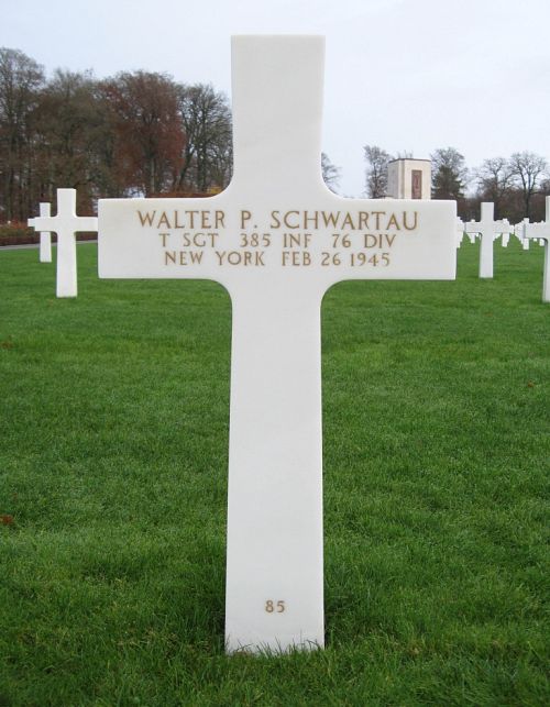 T/Sgt Walter P. Schwartau attended high school for four years and was an actor when he joined the National Guard in New York City, New York on 15 October 1940.He was married to Claire Jacqueline Murphy on 17 December 1943 in Queens, New York City.