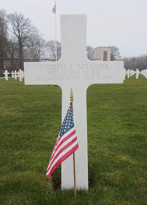Pfc Joseph J. Scialoia was employed at the Mansfield Bleachery before he enlisted in Boston, Massachusetts on 15 March 1941.Source of information: Peter Schouteten, www.abmc.gov, www.wwiimemorial.com, www.archives.gov - WWII Enlistment Record, www.ancestry.com - Headstone and Interment Record / U.S. WWII Draft Cards Young Men / Scialoia Family Tree / 1940 Census, www.fold3,com - 26th Infantry Division