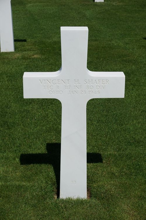 T/3 Vincent H. Shafer graduated from Saint Joseph's College in Rensselaer, Indiana and was a machinist.He enlisted at Fort Thomas, Kentucky on 6 July 1942.