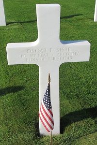 Pfc Oscar F. Siebe worked on a farm before he enlisted at Fort Benjamin Harrison, Indiana on 14 February 1942.He is remembered at the Saint James Lutheran East Cemetery in Holland, Dubois County, Indiana.