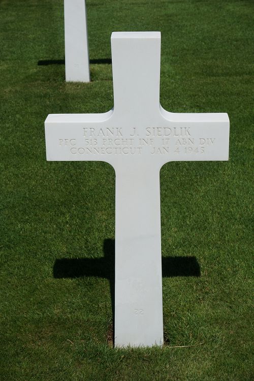 Pfc Frank J. Siedlik enlisted in Hartford, Connecticut on 26 July 1943.He was a peddler before he enlisted.