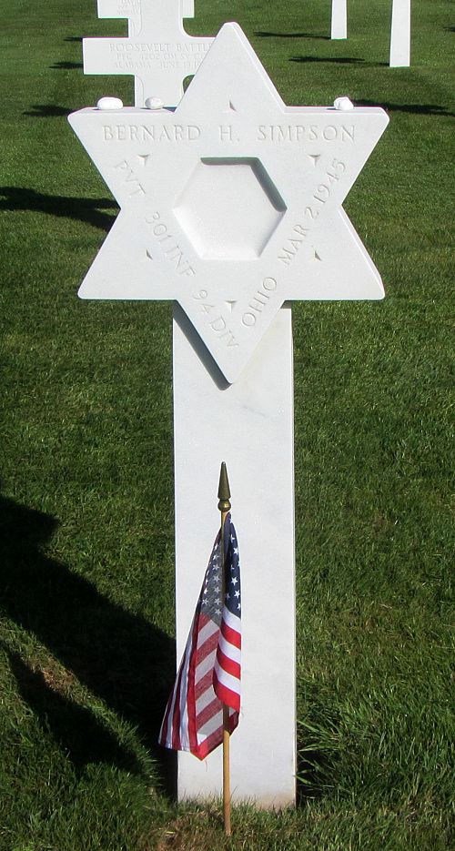 Pvt Bernard H. Simpson attended high school for 4 years before he enlisted at Fort Hayes Columbus, Ohio on 9 September 1944.Source of information: Peter Schouteten, www.abmc.gov, www.wwiimemorial.com, www.archives.gov – WWII Enlistment Record, www.ancestry.com - Headstone and Interment Record / Waxberg Family Tree, http://www.94thinfdiv.com, www.newspapers.com – The Cincinnati Enquirer Ohio 5 April 1945