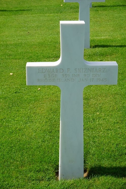 S/Sgt Edward F. Skizniarz attended high school for 3 years and was a shipping and receiving clerk before he enlisted in Providence, Rhode Island on 8 July 1942.Source of information: Peter Schouteten, www.abmc.gov, www.wwiimemorial.com, www.archives.gov - WWII Enlistment Record, www.ancestry.com - Headstone and Interment Record / U.S. Social Security Death Index