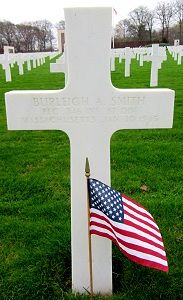 Pfc Burleigh A. Smith attended college for one year before he joined the Regular Army in Fort Devens, Massachusetts on 12 November 1943.He volunteered to lead a rescue party over exposed terrain, which was under artillery fire, to rescue a wounded companion. His party reached the wounded man, but while loading him on to the stretcher, Sgt Smith was mortally wounded. For this action he was rewarded the Silver Star Medal posthumously.