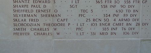 Pfc Charles W. Smith attended the California Institute of Technology.He enlisted at Fort MacArthur, San Pedro, California on 12 April 1944.