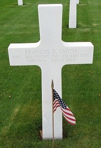 Pfc Francis B. Smith volunteered for the U.S. Army in Washington, District of Columbia, on 3 December 1942.He attended high school for 3 years and was a printing and publishing clerk.