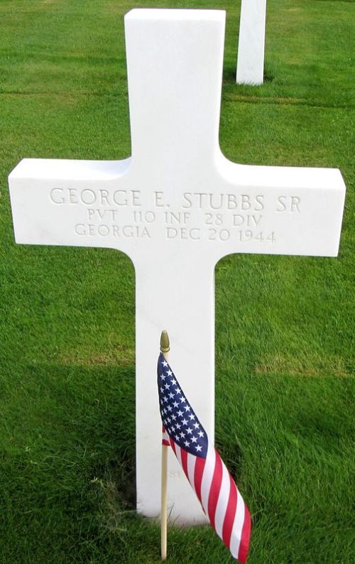 Pvt George E. Stubbs Sr. was a mechanic and repairman before he enlisted at Fort McPherson, Georgia on 18 April 1944 and was sent overseas in September 1944.He was taken prisoner and died of his injuries in Germany.