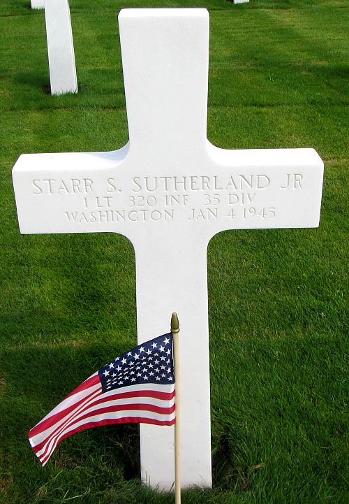1st Lt Starr S. Sutherland Jr. attended college for two years before he joined the U.S. Army Reserve in Seattle, Washington on 9 September 1942.In a personal letter to the parents of Sutherland, General Patton told them Lt Sutherland was commanding a platoon when he was killed instantly during vicious fighting in the village of Harlange, Luxembourg.