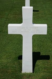 S/Sgt Allen E. Sweet attended high school for 4 years and was a hotel clerk before he volunteered for the U.S. Army in Manchester, New Hampshire on 23 September 1942.Source of information: Peter Schouteten, www.abmc.gov, www.wwiimemorial.com, www.archives.gov - WWII Enlistment Record, www.ancestry.com - Headstone and Interment Record / Samantha Williams Family Tree / 1930 Census, http://www.94thinfdiv.com, www.findagrave.com