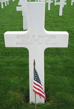 Pfc Estill T. Switzer worked on a farm before he enlisted at Fort Thomas, Kentucky on 18 March 1944.Source of information: Leo Minne, www.abmc.gov, www.wwiimemorial.com, www.archives.gov – WWII Enlistment Records, www.ancestry.com – 1930/1940 Census / U.S. Headstone and Interment Record / Kentucky Birth Index, www.findagrave.com, A footsoldier for Patton / Michael C. Bilder James G. Bilder, The 5th Infantry Division in the ETO